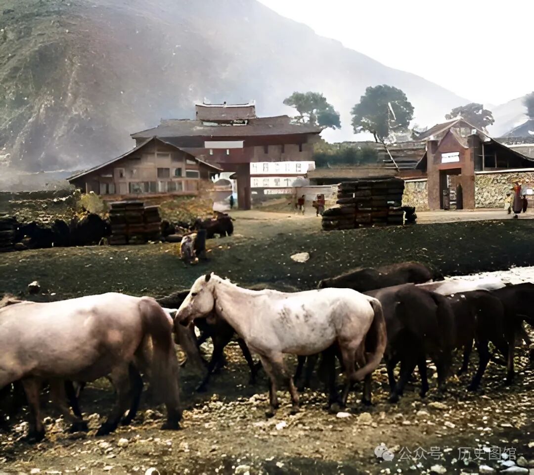 30年代,位于康定北门外的西康牧运公司前,一名男子正拉着黄包车赶路。在过去,川藏地区的物资运输主要依靠“乌拉(无偿劳役)”差役。为了减轻藏民负担,当地成立了“西康牧运公司”,废除了“乌拉”。