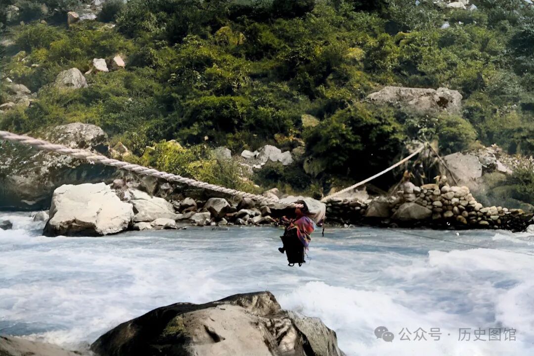 在过去,康定当地交通不便,桥梁很少。人们为了跨越河流,人们在河道之上拉起一根长长的绳索。人们想要到达河对岸,就得乘坐这座溜索。人们将自己悬挂在溜索上,依靠地势和惯性的作用,就能迅速到达河对岸。不得不赞叹劳动人民的聪明才智。