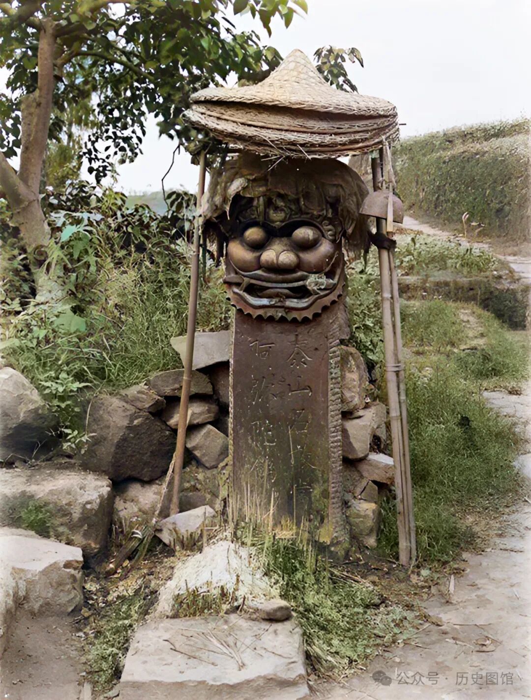 7月15日,考察队来到南充市仪陇县地界上。他们看到路边立有一通石碑,上面雕刻着“泰山石敢当,阿弥陀佛”等字样。石碑的最上部,雕刻着一个狮子头。