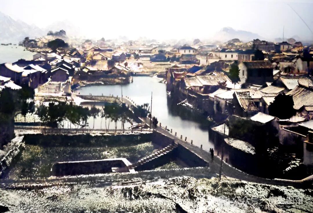 1907年,温州东门浦桥景象。东门浦,是旧时温州城内东北向河流(东向护城河)与瓯江交汇的地宕。照片中,房屋依水而建,为典型的江南建筑风格。江南水乡韵味十足。