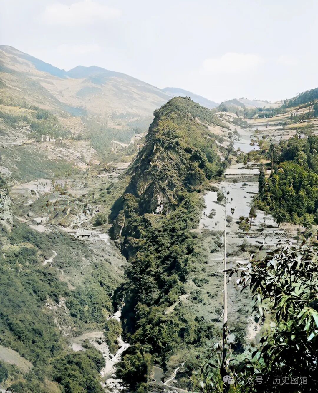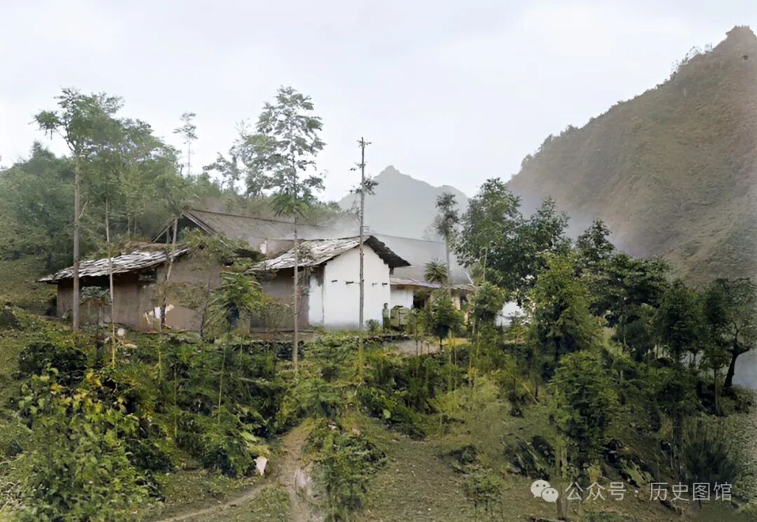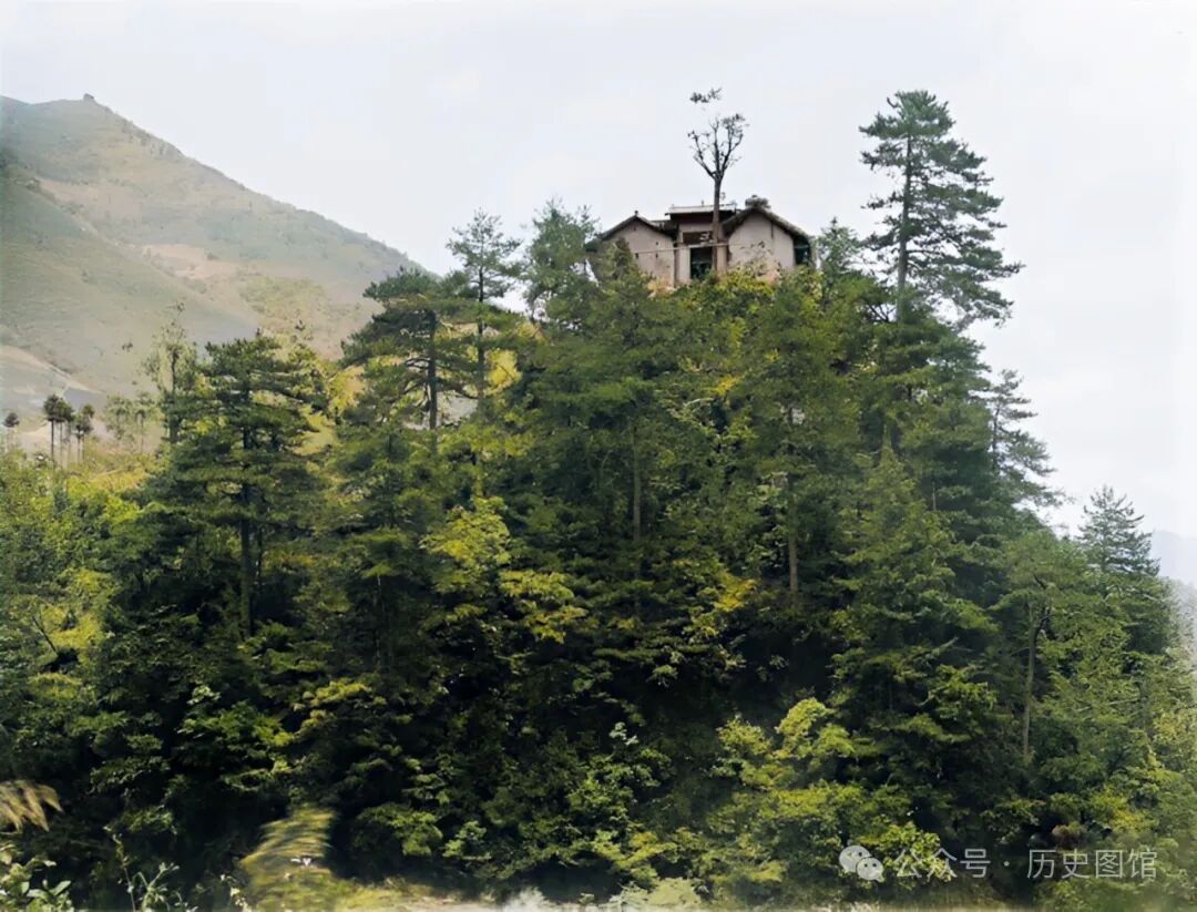 1910年,湖北省兴山县白羊寨村附近景象。在平缓的山坡上,能看到居住着一户人家。附近没有植被的地方,应该是新开垦的土地。现如今的白羊寨村,已变了模样成为新农村。