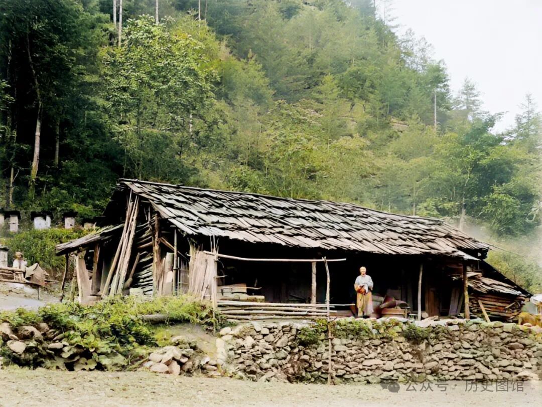 1910年,湖北神农架区大九湖镇景象。大九湖镇,又叫坪仟镇。大九湖,是一片沼泽地-山涧盆地,是亚高山的一片湿地,四周高山重围。这里环境优美,素有“高山平原”的美誉。