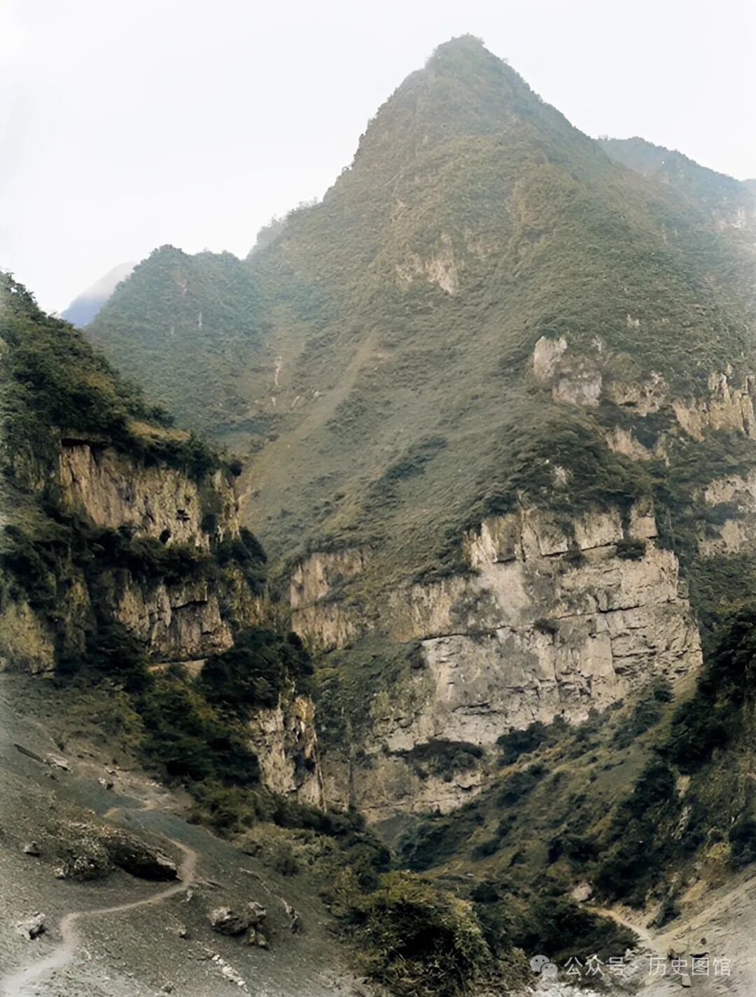 这是湖北省兴山县高阳镇响龙村景象。张伯林站在山头上向下俯瞰,峡谷之中凸起一道山梁,蔚为壮观。这座山梁位于高阳镇水泥厂后面。看着100多年前的响龙村老照片,和现在完全不一样。