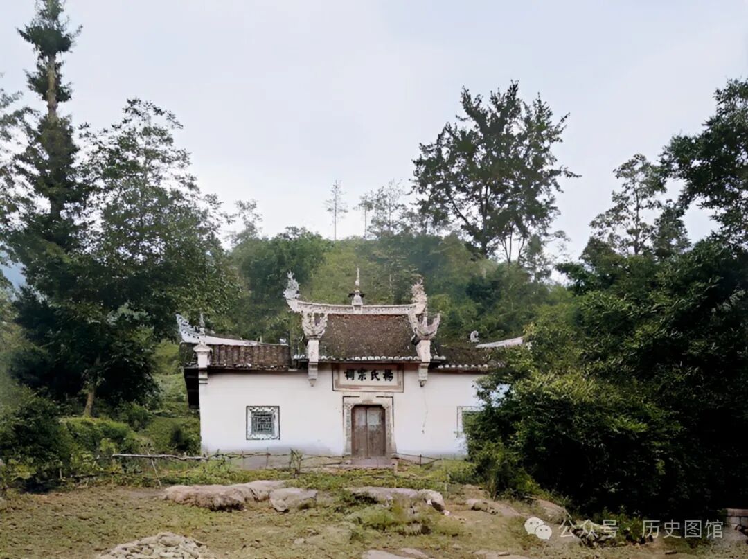 张伯林来到湖北省兴山县黄粮镇的杨家湾。在这张照片中,这栋房屋建造的很讲究,粉墙黛瓦。门楣上方写着“杨氏宗祠”四个大字。可见,这是当地一杨姓家族的宗祠。在过去,宗祠代表着威严,是道德与权利的象征。