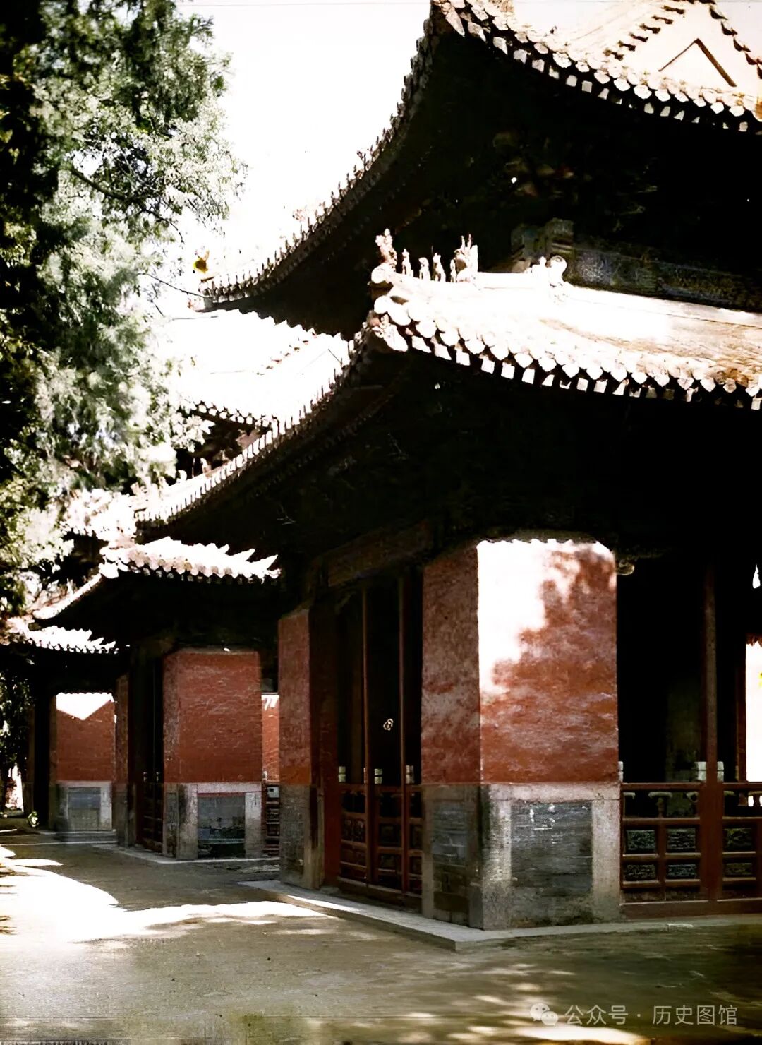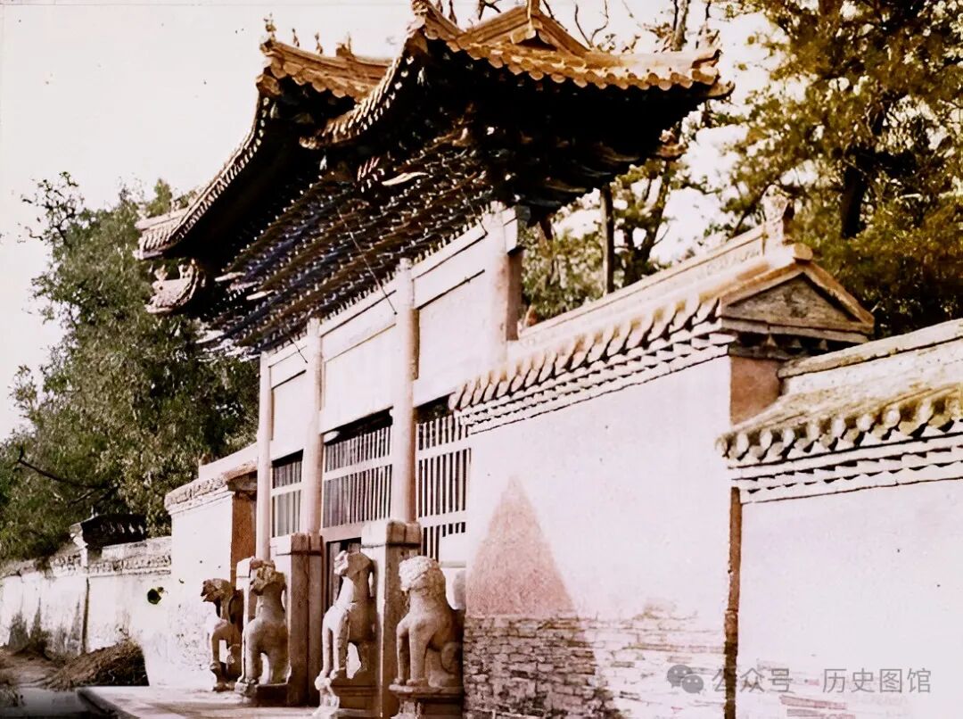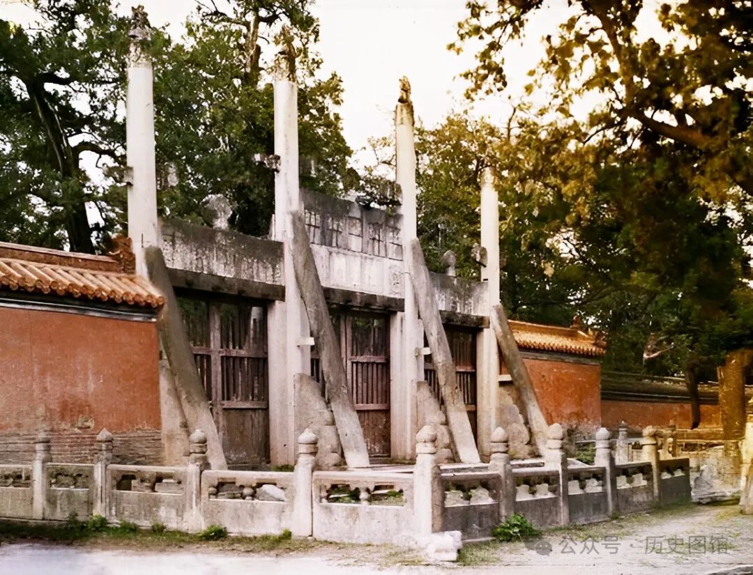 这是100多年前文庙内的大成门。十三碑亭院后是大成门,算是孔庙的最后一道大门了。大成门的规格很高,门钉都是一行9枚,共108颗。匾额由清雍正帝所题。大成门左右两侧,是“玉振门”和“金声门”。大成门后面,即为孔庙的核心部分。