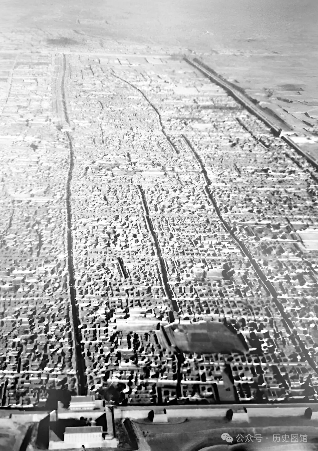 这是1933年的西安城景象。西安是十三朝古都,从这个角度看西安古城,何其壮观。那时候的城墙还没有拆除,城门楼高耸,城内的街道笔直,一眼望不到尽头。民居建筑鳞次栉比。处处显示着昔日帝王之城的气质。