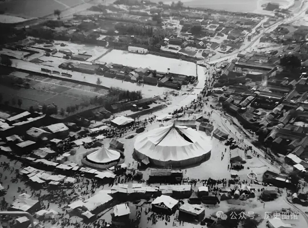 这是1933年的郑州。在一处广场上,搭建有两个极大的圆形帐篷。原来,这里正在举行一年一度的社火活动。帐篷里正在表演马戏、杂耍等节目。广场四周摆放着各种摊位。人群熙熙攘攘,十分热闹。有人说,郑州是火车拉来的城市,郑州是河南省重要的铁路枢纽。