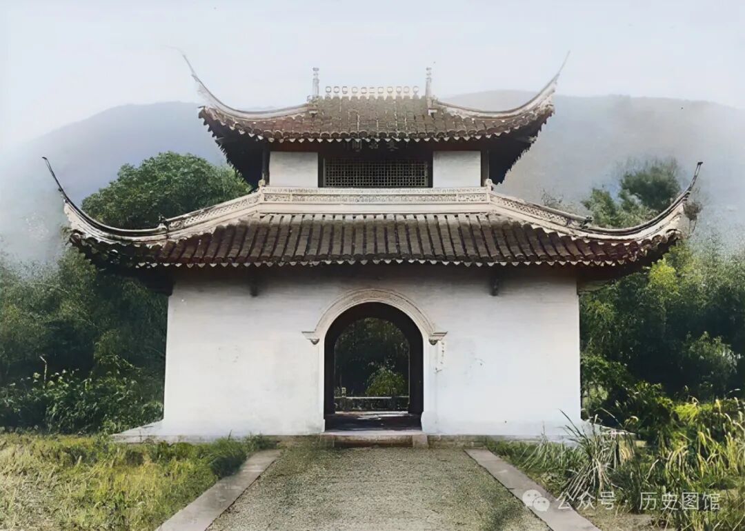 从照片中看,这是一处寺庙。看上去非常古朴。这就是30年代绍兴著名的大禹庙景象。大禹庙位于绍兴东南郊的会稽山,始建于南朝梁初,距今已有1400多年历史。