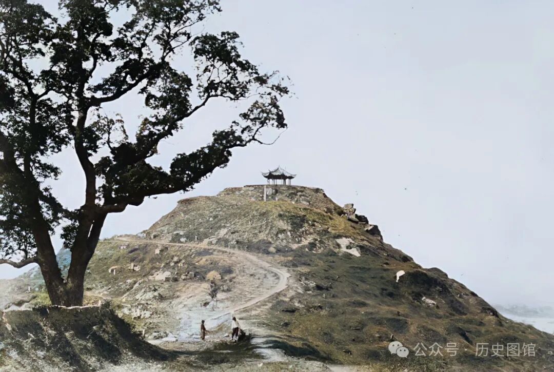 这座看上去光秃秃的山,是绍兴的府山。有曲折的小路通向山顶,山顶上有一座六角亭子——望海亭。望海亭,始建于唐代。后世历经多次毁建。