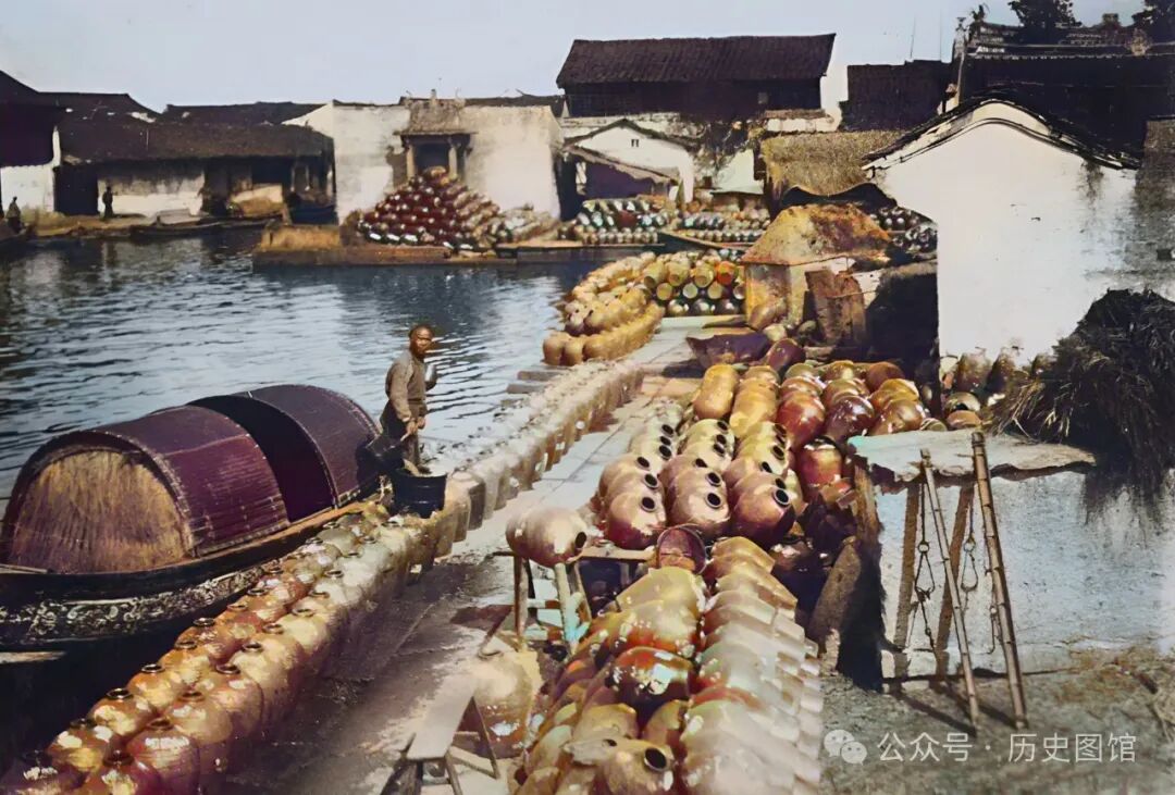 30年代,绍兴城内的一个黄酒手工作坊前。一名工人正清洗酒缸,废水直接倒进了河里。绍兴盛产黄酒,清朝时就被评为全国十大名产之一。