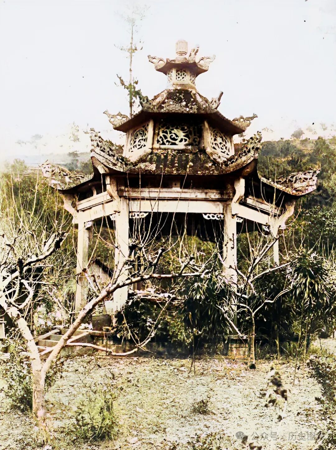 这是位于绍兴会稽山上的“咸若古亭”。古亭建于宋孝宗隆兴二年(公元1164年),距今已有850多年历史了。古亭六角,重檐三层,镂空雕饰,极具绍兴地方特色。