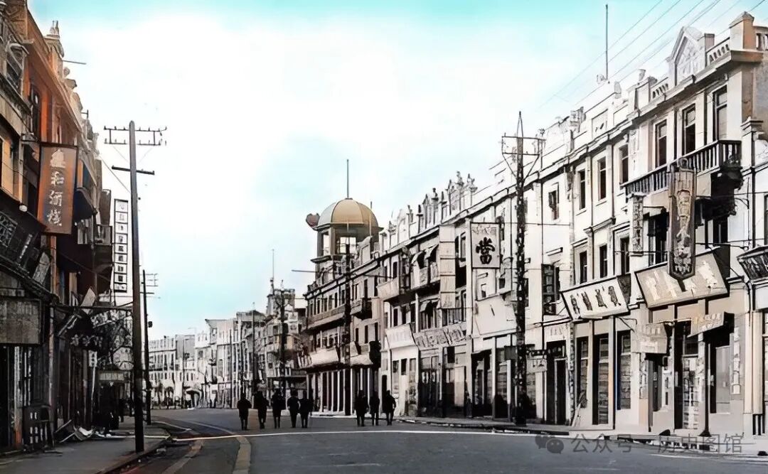 从照片中可以看出,当时的民生路很繁华,街道两侧都是三层以上的欧式大楼。街道两侧店铺林立,相当得繁华。