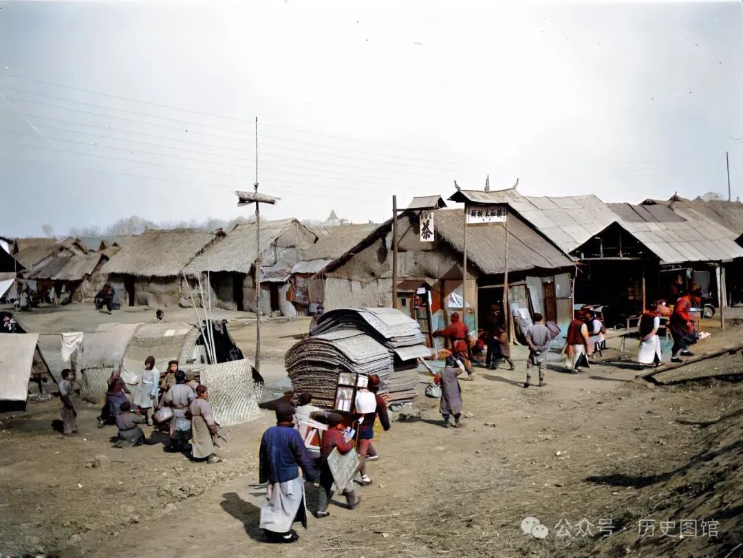 一间间店铺都在开门营业,空地上摆放着成摞的竹席。可见,当时的汉口,各种行业聚集在这里,已经有了现代商贸城的雏形。