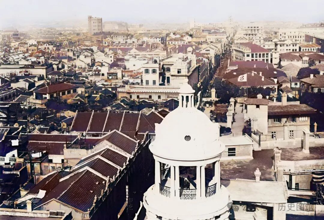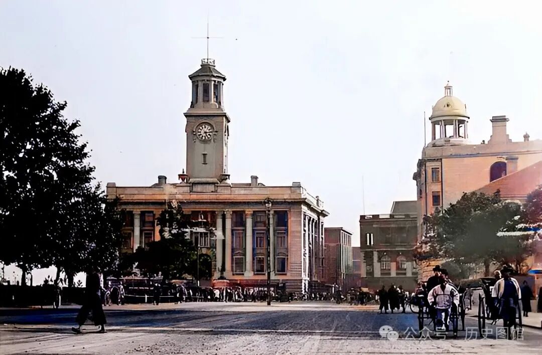 1930年,汉口租界内,江汉关钟楼。江汉关大楼,是当时汉口最高的建筑,作为海关办公所用,是执行监督货运、征收关税和查禁走私等职责的行政机关,也是当时周围最高建筑。