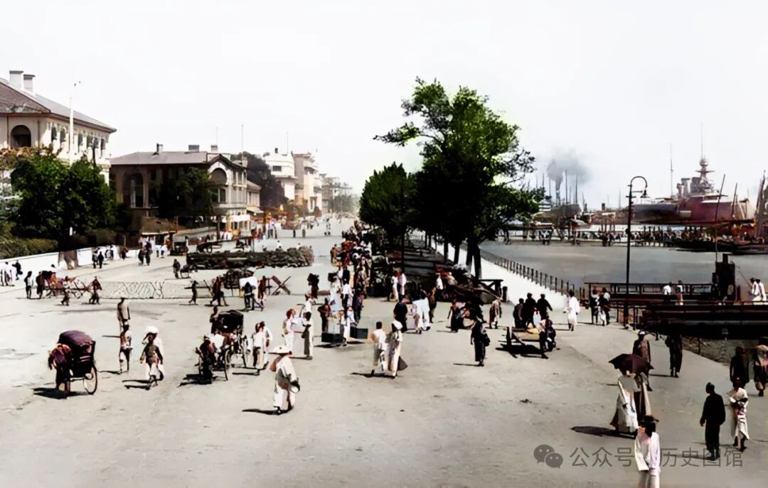 最早设立的是英租界。码头边栈道旁,路中间拉起了铁丝网,有外国卫兵站岗,并设置有沙袋掩体,不准中国人进入。