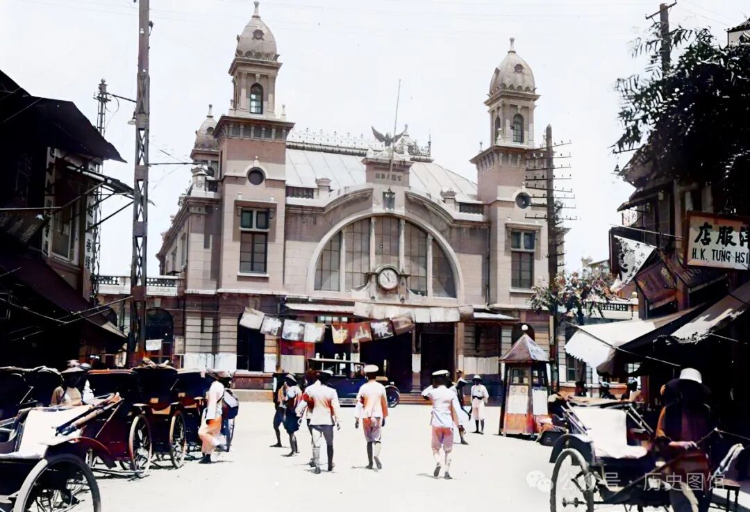 这是30年代的汉口火车站,站房为哥特式建筑,几名警察正在广场上执勤巡逻。该站始建于1903年,原称京汉火车站,位于京汉铁路的南端终点。武汉人习惯称其为大智门火车站。
