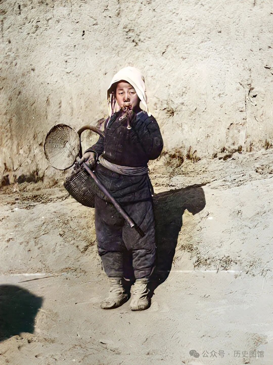 在乾州城外,莫理循遇到了一名少年。他身穿棉衣,头上裹着白毛巾,胳膊上挎着竹篮。原来,他是一名拾粪的孩子。