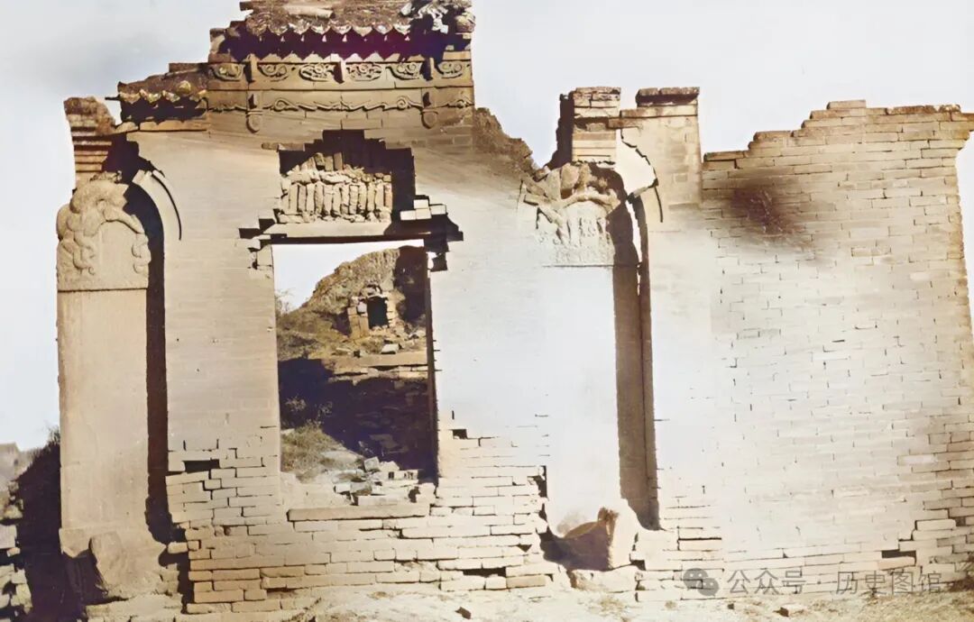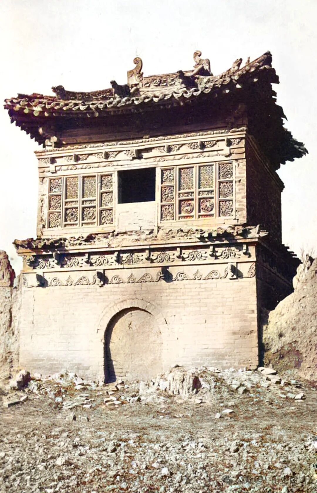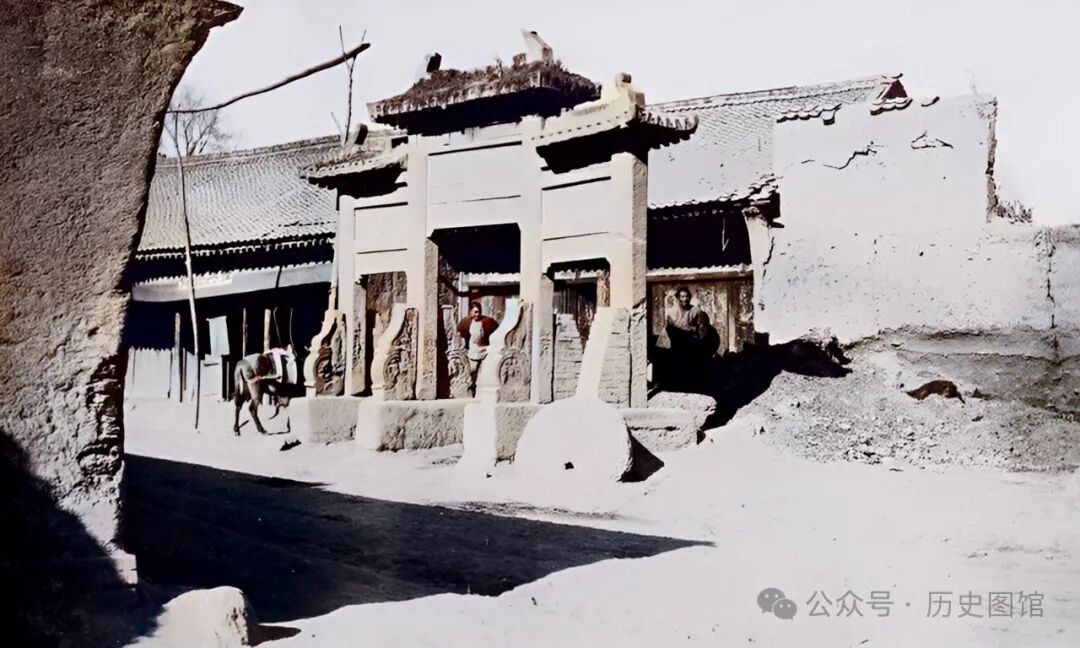 离开店张驿,莫理循在路旁看到了一座高大的建筑。这是一座废弃的寺庙,拱形门洞已经被人用砖封死。建筑两侧的土墙,也已经坍塌。
