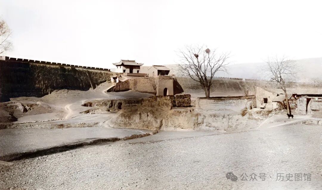 这天,莫理循的车队,来到了一个叫“清水驿”的地方。在古代,这里地理位置重要,建有有驿站和城关。清水驿,即今清水驿乡,位于兰州榆中县中部。照片中,荒废的门楼和围墙,看上十分荒凉。