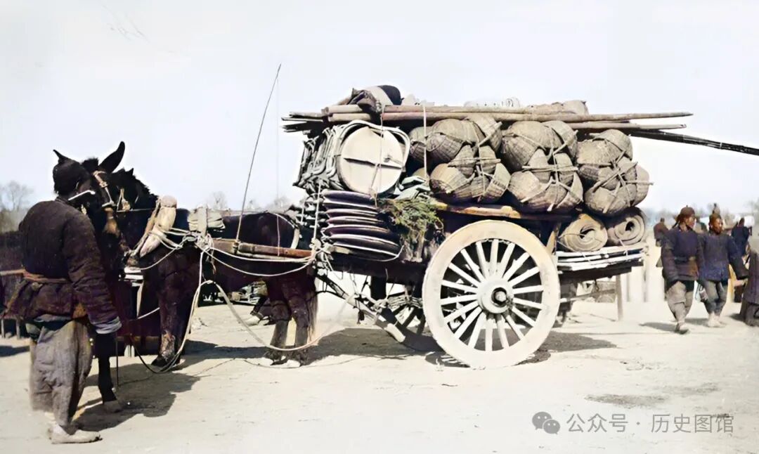 店张驿,即现在的陕西兴平县店张镇。从古到今,这里都是商贸和军事的交通要道。在这里,莫理循看到了一辆装满货物的马车。街道上,人来人往很热闹。