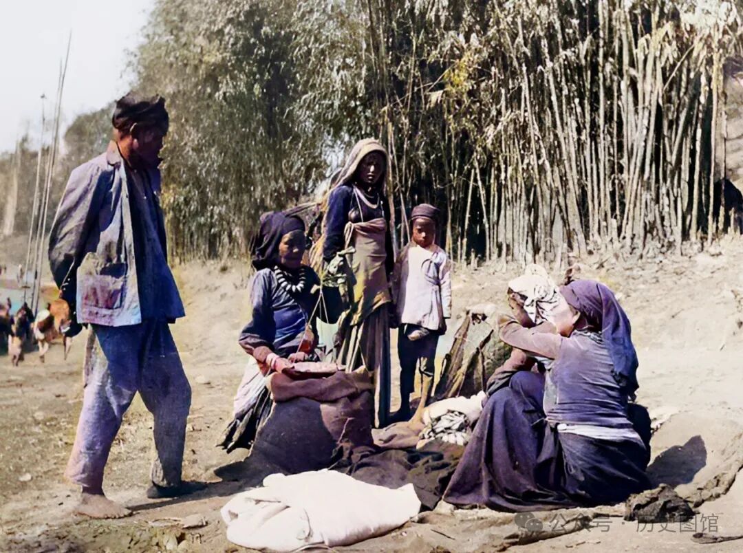 这几名小贩,有男人也有女人,还带着他们的孩子。仔细看,他们的服饰与西藏地区的百姓有明显的不同。