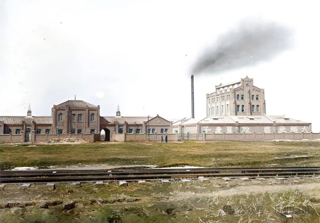 1906年,日本人在铁岭创办的一家制粉会社,即面粉工厂。地址在“铁岭驿”(老火车站)铁道西的铁路附属地内。照片中,这家面粉厂规模不小,厂房林立,烟囱里正向外冒着黑烟。厂区外面,有铁路线经过。