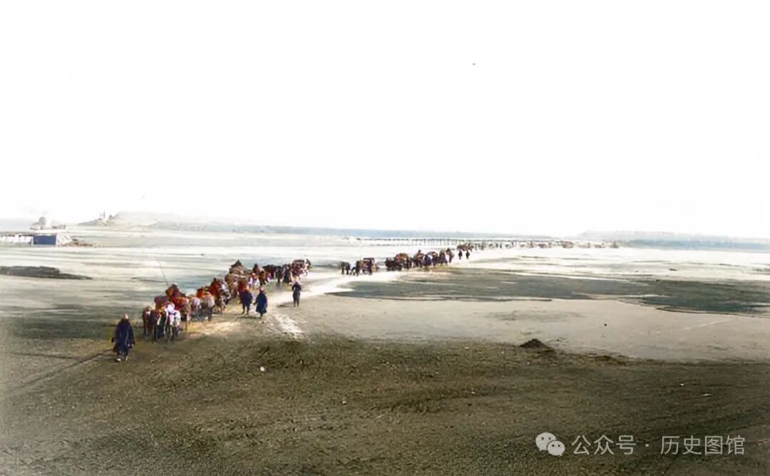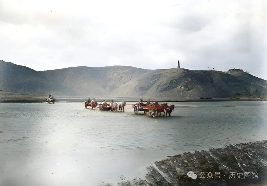 清朝末年,铁岭柴河上,当地人的几辆马车,正从浅水区涉水通行。柴河,原称麒麟河,是辽河的重要支流。
