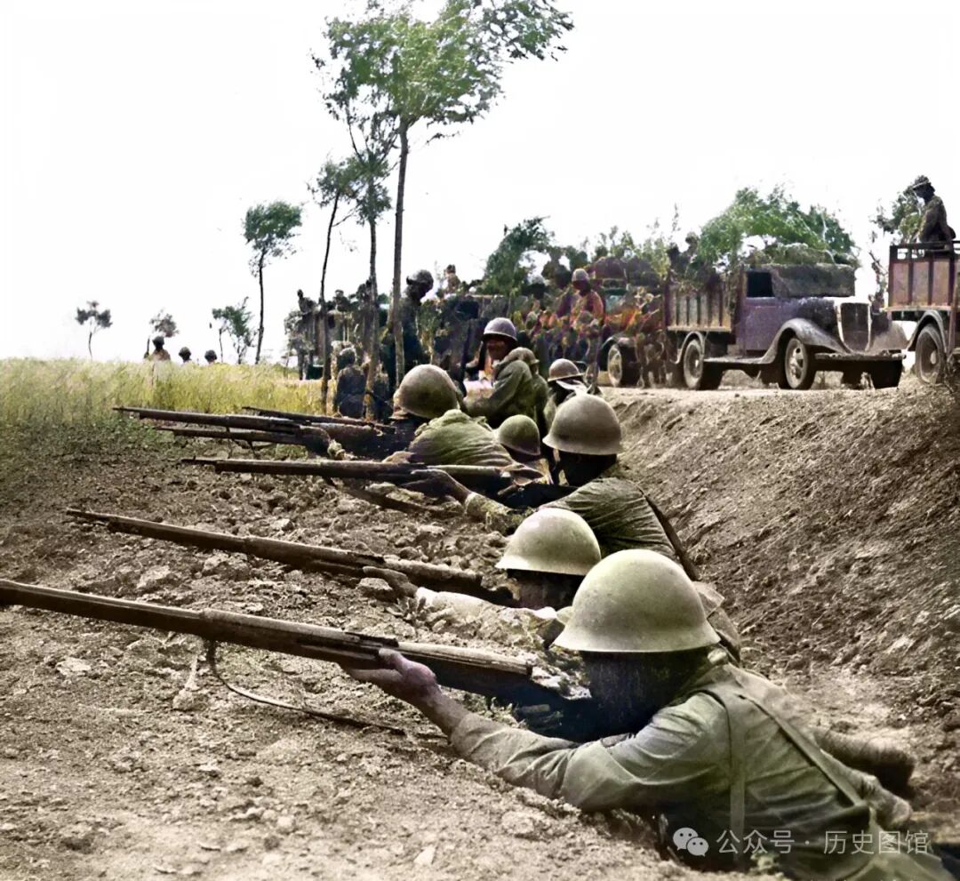 1938年5月14日,日军的一支辎重部队,行至徐州丰县附近时,与中国军队遭遇,双方立即开火。这些日军立即停下车,趴在沟渠里朝中国军队的阵地射击。这些日军隶属今田部队辎重队。