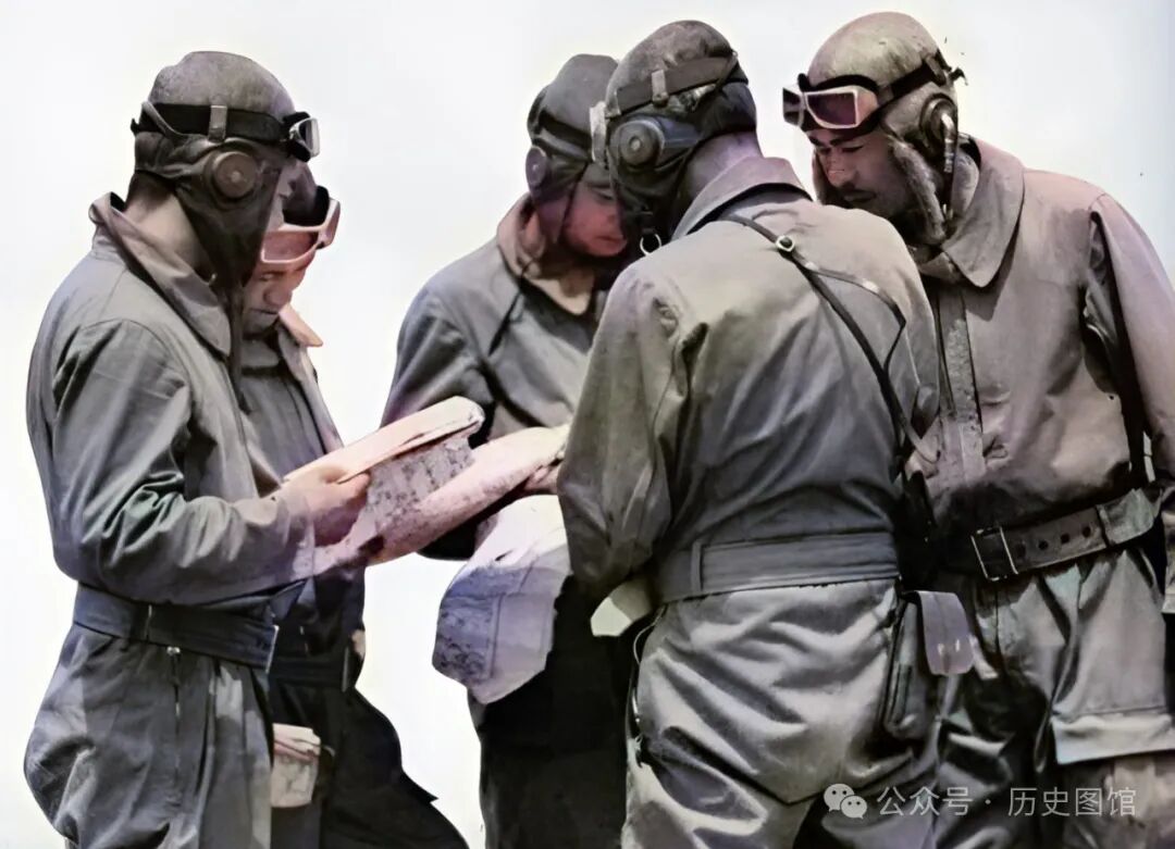 1938年,日军进犯徐州时,日军田中部队飞行员在查看作战地图。日军在占领徐州前,曾对徐州进行过数十次轰炸。其中最为惨烈的是发生在5月14日的轰炸。日军投掷280枚燃烧弹,死伤平民七八百人,焚烧房屋达3000多间。