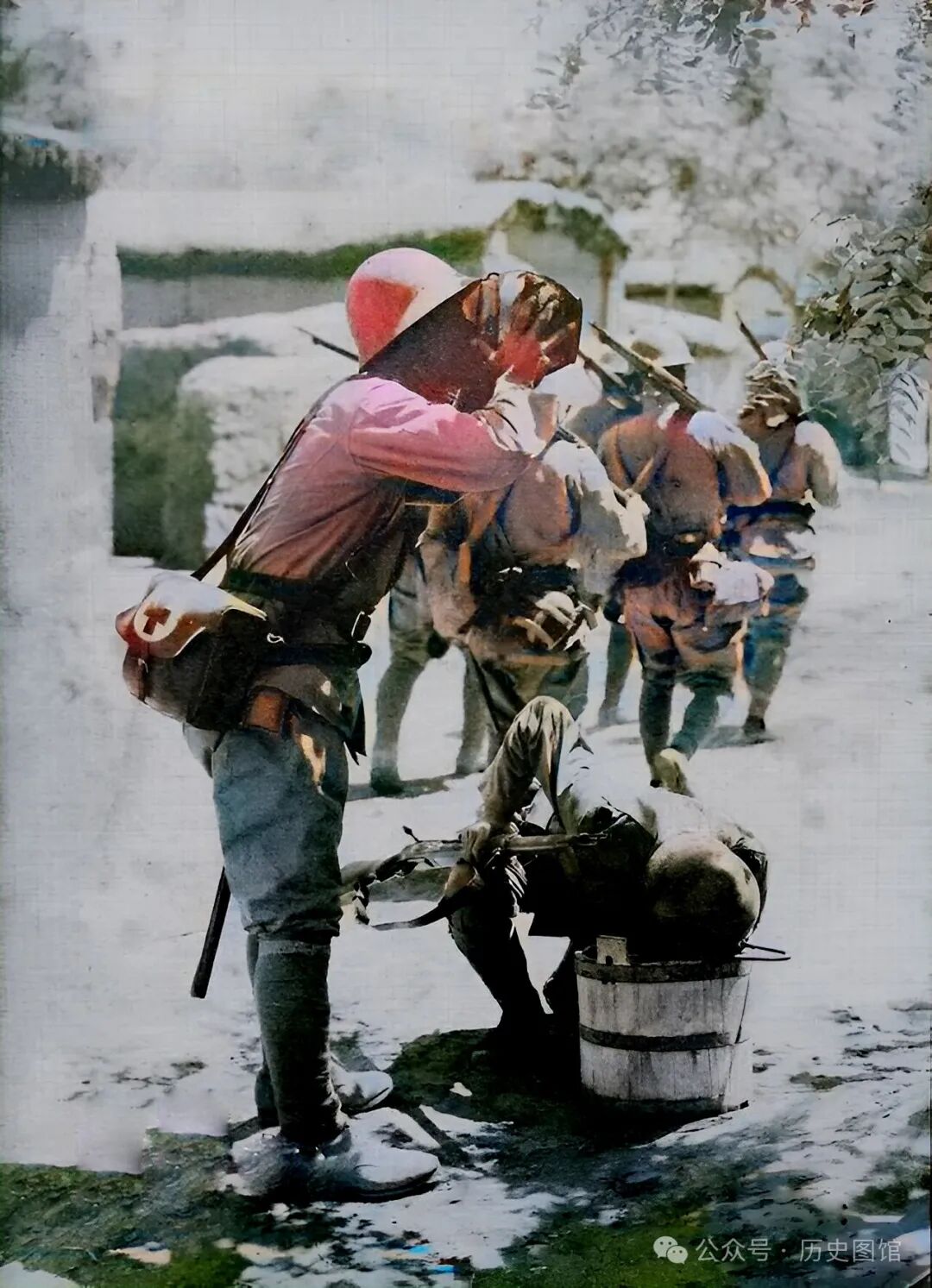 1938年,几名日军医疗兵饥渴难耐,在一个村子里看到路旁有一口水井。立即跑过去打水饮用。其中一名日军,竟然像动物一样,直接把嘴插进桶里喝水。真是丑态百出!
