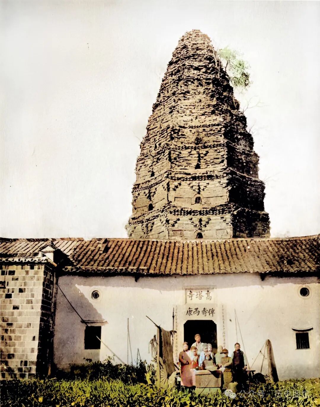 黄梅钟灵毓秀、禅韵千年。这张照片拍摄于高塔寺前,门楣上方题额“高塔寺”三个大字,下方还有“俾寿而康”四个字,苍劲有力。一名僧人和几名孩子站在寺门前。