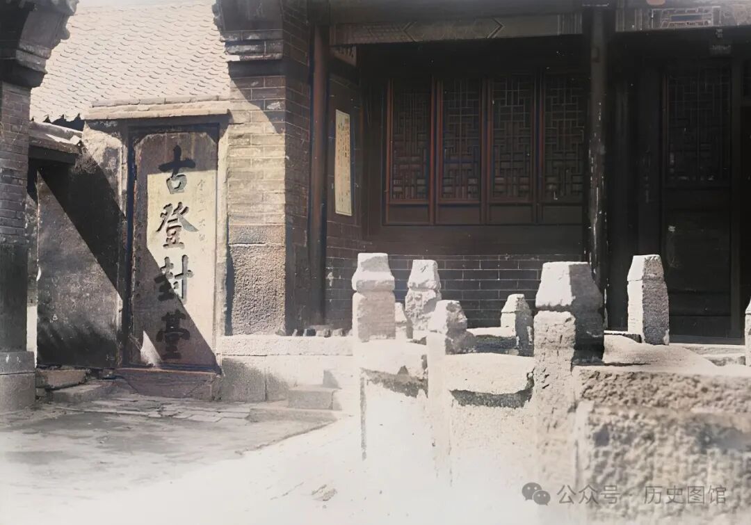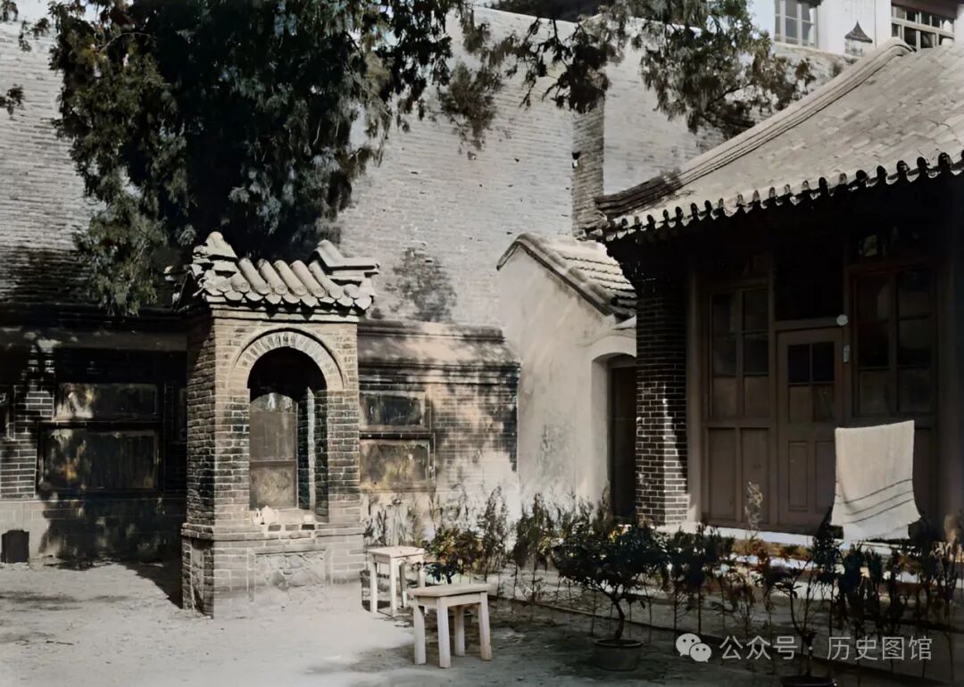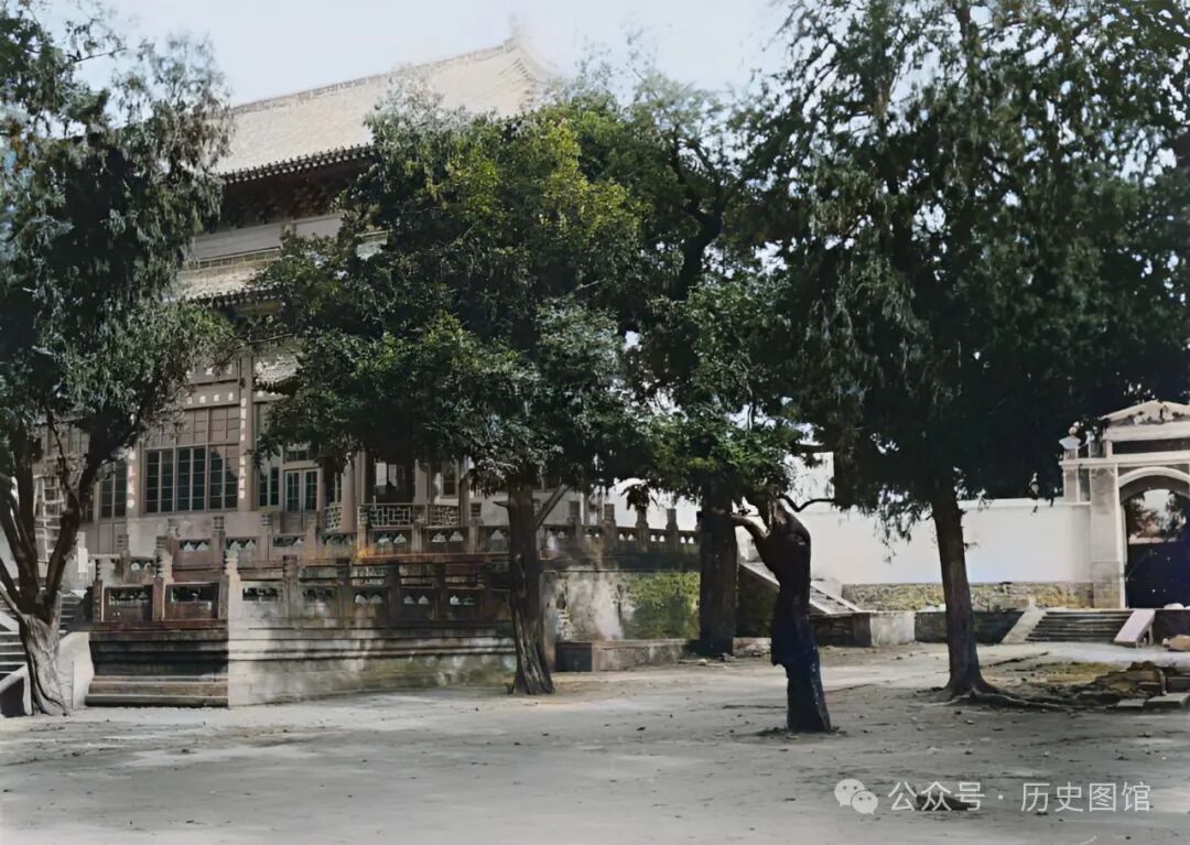 20年代,位于岱庙里的峻极殿景象。该殿是岱庙的主体建筑,位于岱庙仁安门北侧,元称仁安殿,明称峻极殿。院内古树参天,非常幽静。