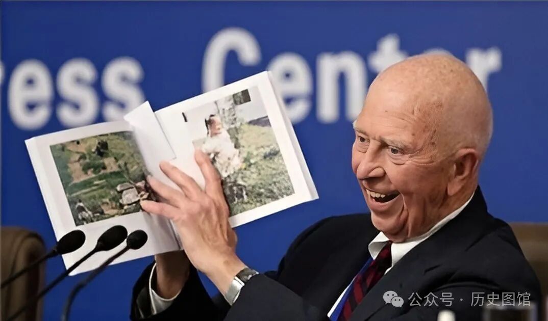 在随后的记者会上,他动情地说:“中国人民很热情,中国很美好!”并展示了《飞虎队队员眼中的中国:1944-1945》影集。