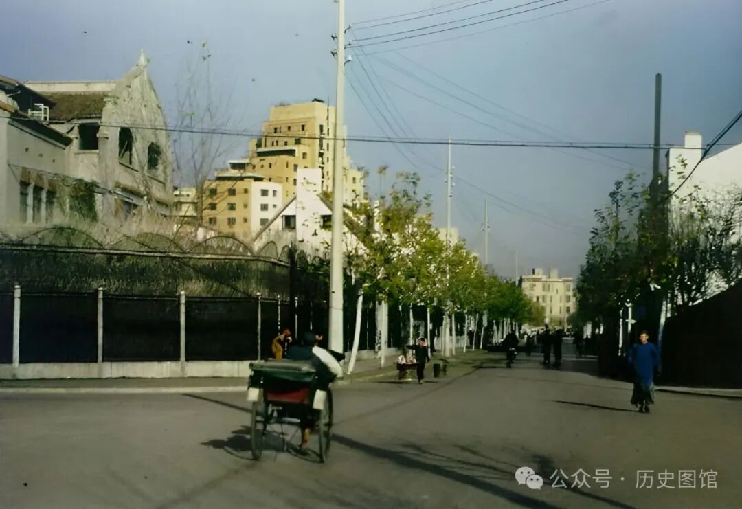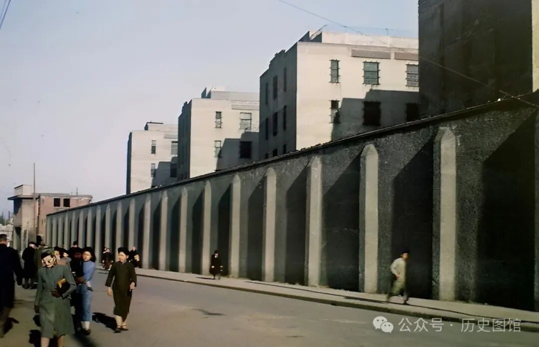 照片中围墙内的建筑,是当时位于上海虹口区的提篮监狱。从这个角度看,更像是一个仓库大院。