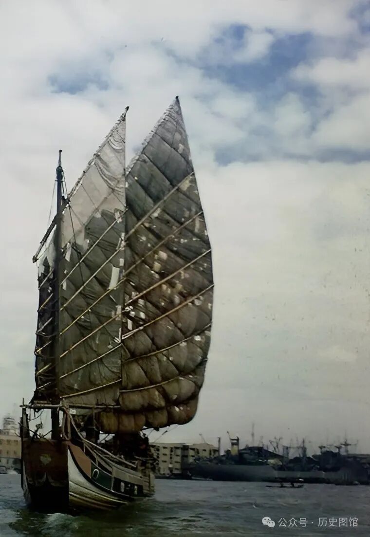 飞虎队员艾伦·拉森在黄浦江边,发现了一艘老式帆船。两面巨大的船帆已经升起来,正准备扬帆起航。