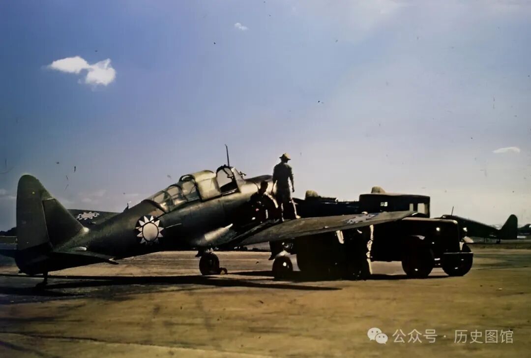 这张照片拍摄于上海一座机场。停机坪上,停着一些被缴获和收编的日军飞机。几名机械师站在机翼上,正在对飞机一些损坏的部位进行修理。
