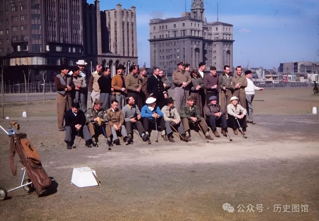 40年代,一群飞虎队员在上海一处高尔夫球场上打球,中间休息时,队员们在球场边合影。他们中有的身穿军装,有的穿便装。从他们身后的大楼,你能看出这个高尔夫球场位于哪里吗?