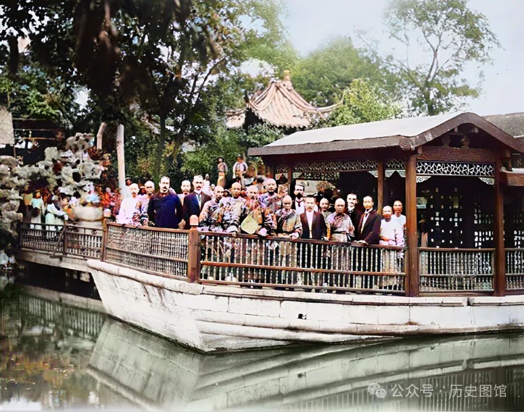 1903年8月,光绪帝33岁生日。万寿节来临之际,两江总督魏光焘率南京当地官员在两江总督府举行盛大宴会,邀请一些驻南京的外宾出席,共同为皇帝贺寿。宴会结束后,魏光焘又率众人一起来到到煦园,登上不系舟合影留念。