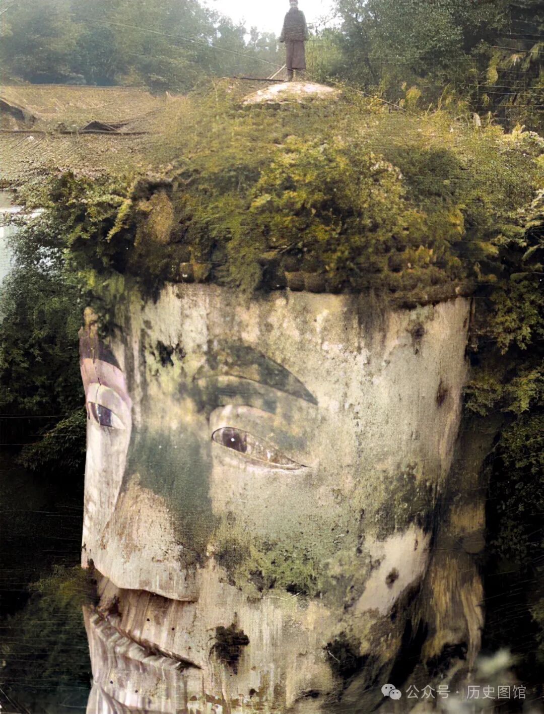 清朝末年,四川乐山大佛的头顶上,站着一名男子。那时候的大佛,看上去十分的沧桑。头上的肉髻和嘴角,长满了杂草和苔藓。大佛的眼神也和现在不一样。