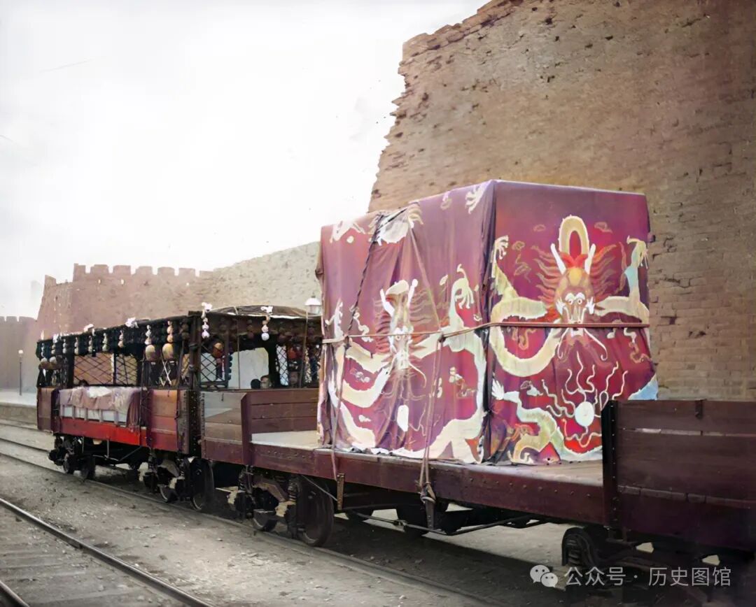 1904年,一列火车从北京城墙边驶过。车上装着一个覆盖着绣有龙纹绸缎布的长方形的箱子。里面装的是什么?