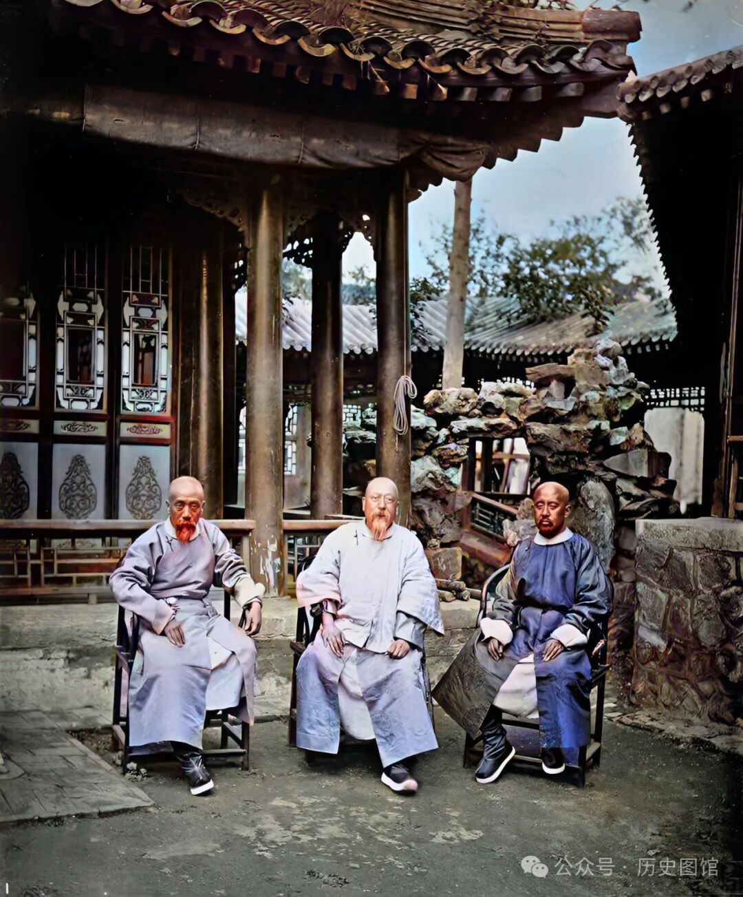 照片中这三位,坐在太师椅上,气度不凡。他们是清朝总理衙门大臣沈桂芬、董恂和毛昶熙。