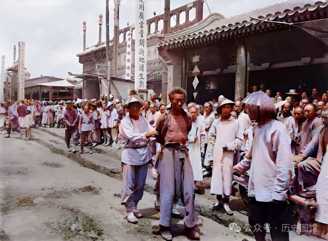 清朝末年,在北京的一条大街上,一名男子五花大绑,正被几名清兵推搡着往前走。街道两旁站满了看热闹的人。原来,这名犯人即将被押往刑场斩首。有些路人面色凝重,大部分人都在观望,也许他们早已习惯了这样的场面。