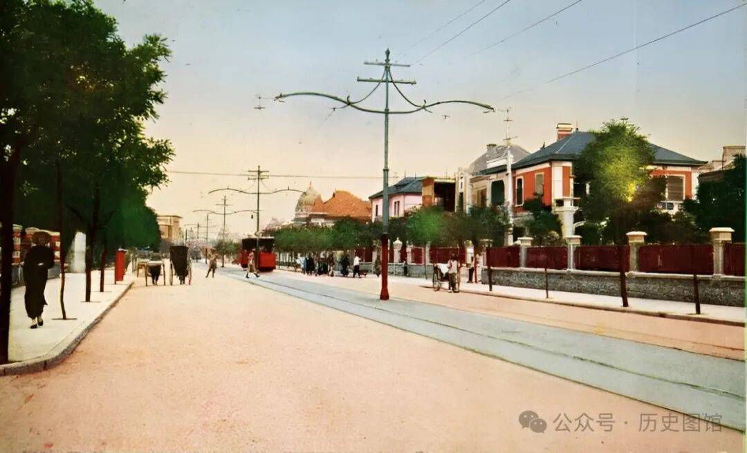 民国时期,天津德国租界内景象。该租界设立于1895年,占地4200多亩,租界内的房屋为典型的德国建筑风格。1921年,中国收回德国在天津租界。近代中国,德国在中国共有两处租界,另一处在汉口。