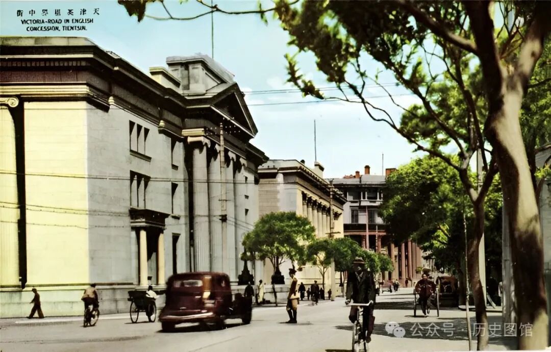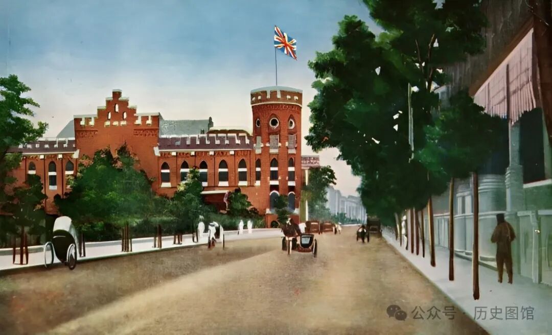 这里是民国时期位于天津的英租界。照片中,英国传统的城堡式建筑叫“戈登堂”,为天津英租界的工部局大楼。大楼始建于1890年。为纪念戈登将大楼命名为戈登堂。