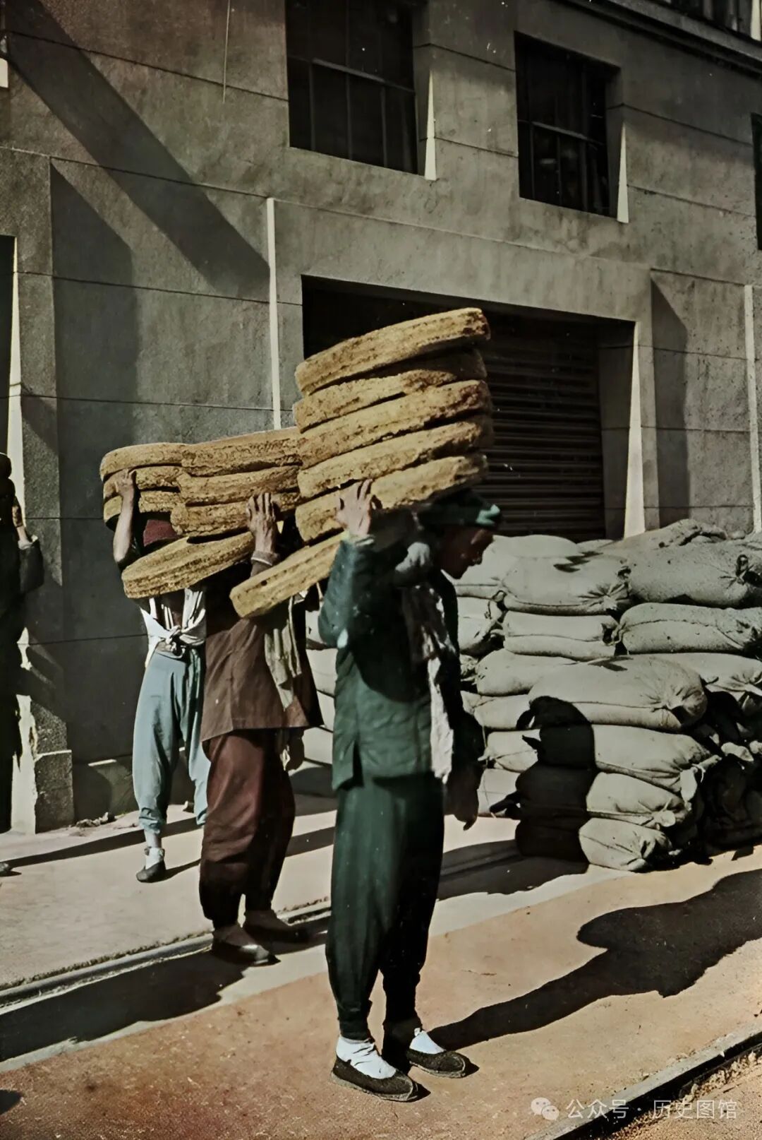 这几名男子,是大连码头上的几名搬运工。日本占领下的大连港,主要靠人工装卸,而且没有任何安全设施