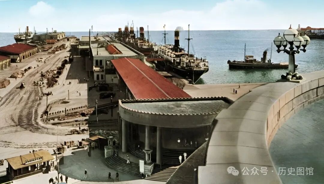上世纪20年代,大连港码头上的景象。大连港始建于1899年,是大连最富有历史的港口。