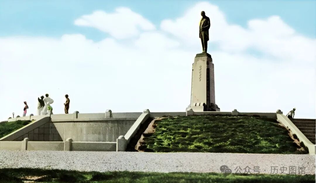 这张照片拍摄于大连星星浦公园,在一座高台之上,矗立有一尊人像,即“后藤伯”的铜像。