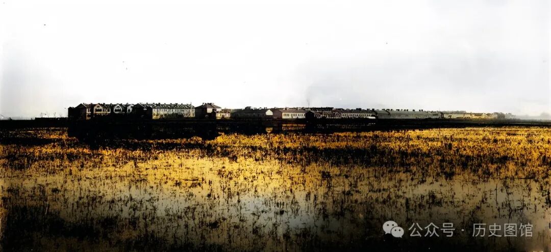 远处的建筑,是英国北清驻屯军兵营。庚子事变以后,八国联军开始在天津城驻军,从此在天津各处留下了许多清末时期的外国营盘。英国兵营改成了现在的市一中。