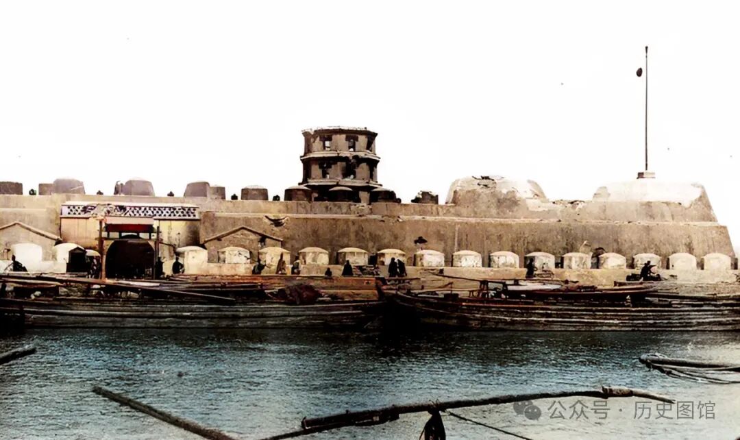 这是大清水师营的炮台、天津的坐标——三岔口黑炮台。如今的河北区政府,是三岔河口炮台旧址。