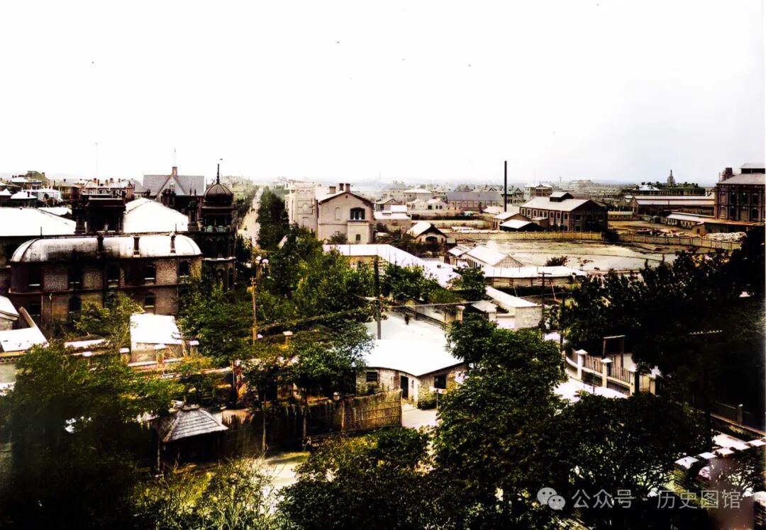 这张照片,也是拍摄于英租界附近。站在高处,依稀能看到远处的日本总领馆、开平矿务局、英国邮便局、美国领事馆等。